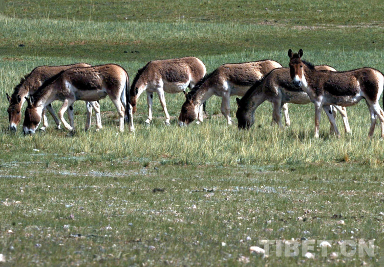 藏野驢,每年7月份為交配期,時(shí)間持續(xù)一個(gè)月。交配無固定場所。第二年7月份產(chǎn)崽。它們喜歡群居生活,少則四五頭,多則成百上千頭一起活動(dòng),為藏北草原最常見的大型動(dòng)物。