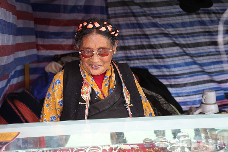 已近古稀之年的羅布和央金從1992年起,便年年參加打隆物交會??钍蕉?、口碑好,純手工鍛造,再加上30年的堅守。讓他們經(jīng)營民族首飾的攤位成為了打隆物交會的必去“打卡地”之一。