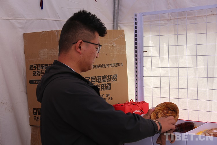 西藏隆子縣電子商務中心工作人員馬天洋說:“電商中心的主要工作就是將當?shù)靥厣r(nóng)牧產(chǎn)品進行資源整合然后在網(wǎng)上銷售,其中最重要的環(huán)節(jié)就是提高產(chǎn)品知名度。打隆物交會就是一個很好的平臺,我們自然不能錯失這樣的機會?!?/p>