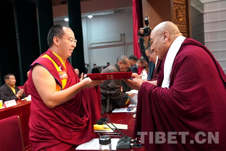 會(huì)上,十三屆全國政協(xié)常委,西藏自治區(qū)政協(xié)副主席,中國佛協(xié)副會(huì)長、西藏分會(huì)常務(wù)副會(huì)長,西藏佛學(xué)院院長珠康?土登克珠宣讀《表彰決議》。(中國西藏網(wǎng) 記者/王淑 拉姆 歐帆)