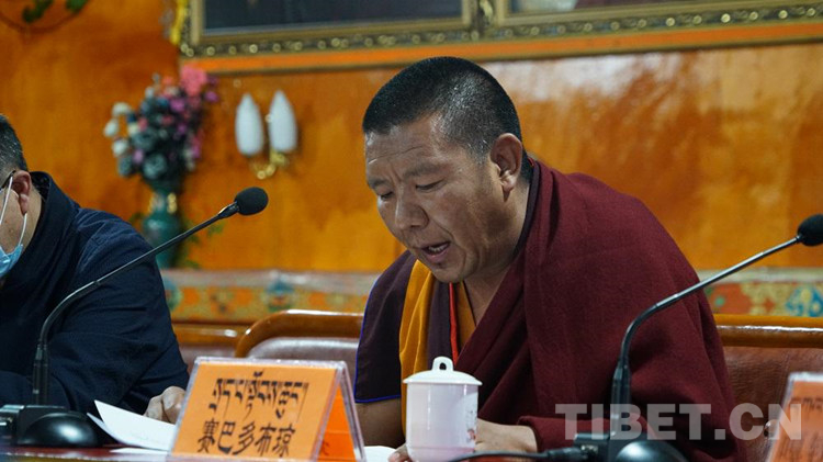 扎寺管委會副主任賽巴·多布瓊、扎寺管委會委員嘎欽尼瑪平措在大會上交流了學(xué)習(xí)體會。他表示,習(xí)近平總書記到西藏慶祝西藏和平解放,這在黨和國家歷史上是第一次,這表明黨中央對西藏工作的支持,對西藏干部群眾的關(guān)懷,總書記到哲蚌寺視察并發(fā)表重要講話,是對西藏宗教工作的充分肯定,更是對我們廣大宗教界的極大鼓勵(lì)和鞭策。我們一定要牢記習(xí)近平總書記諄諄教誨,繼承和發(fā)揚(yáng)扎什倫布寺愛黨、愛國、愛教的優(yōu)良傳統(tǒng),以史為鑒帶頭引導(dǎo)廣大僧眾永遠(yuǎn)感黨恩、聽黨話、跟黨走,堅(jiān)決劃清與十四世達(dá)賴和達(dá)賴集團(tuán)的界限,堅(jiān)定不移維護(hù)祖國統(tǒng)一和民族團(tuán)結(jié),用自己的實(shí)際行動自覺踐行“四條標(biāo)準(zhǔn)”。