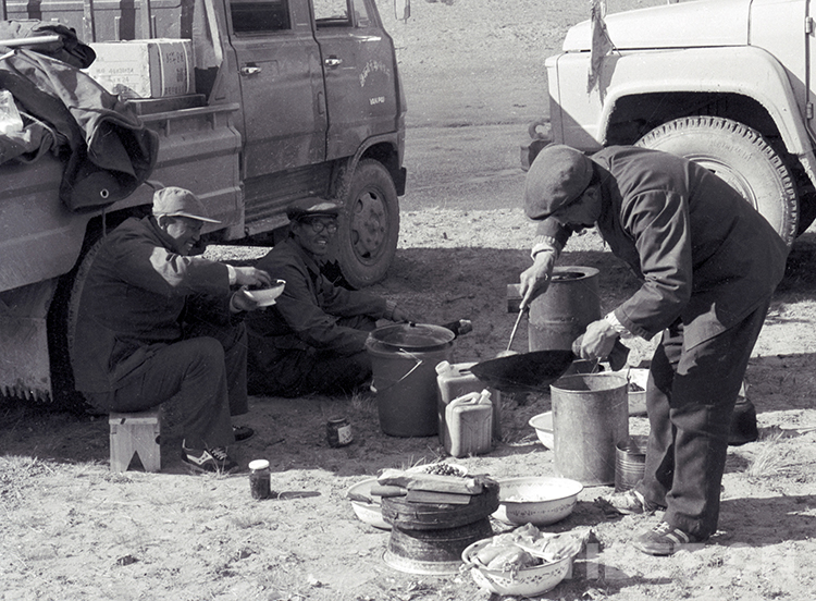 這是陜西省動物研究所姚建初(左一)等動物學家在科考中自己動手起火做飯(唐召明1987年攝)