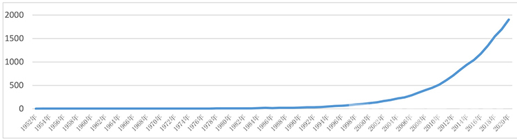 圖為1951—2021年上半年地區(qū)生產(chǎn)總值走勢(shì)(億元)