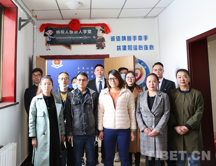圖為納稅人繳費人代表參加阿里地區(qū)稅務(wù)局“納稅人繳費人學(xué)堂”揭牌并合影留念