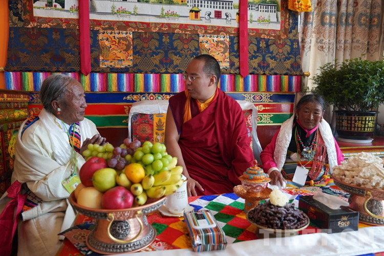 中午時(shí)分,班禪結(jié)束了對拉洛水利的調(diào)研,到扯休鄉(xiāng)嘎吉林村看望搬遷群眾,熱情的村民迎上前來向班禪獻(xiàn)上哈達(dá)和切瑪,班禪高興地?fù)]手致意。班禪緩步來到村民歐珠老人家。班禪為家里的老人摸頂賜福,端坐在歐珠家人當(dāng)中,詳細(xì)詢問搬遷后的生產(chǎn)生活情況。得知?dú)W珠老人一家在搬遷后住房條件、生活條件等都有顯著改善,班禪感到十分欣慰。
