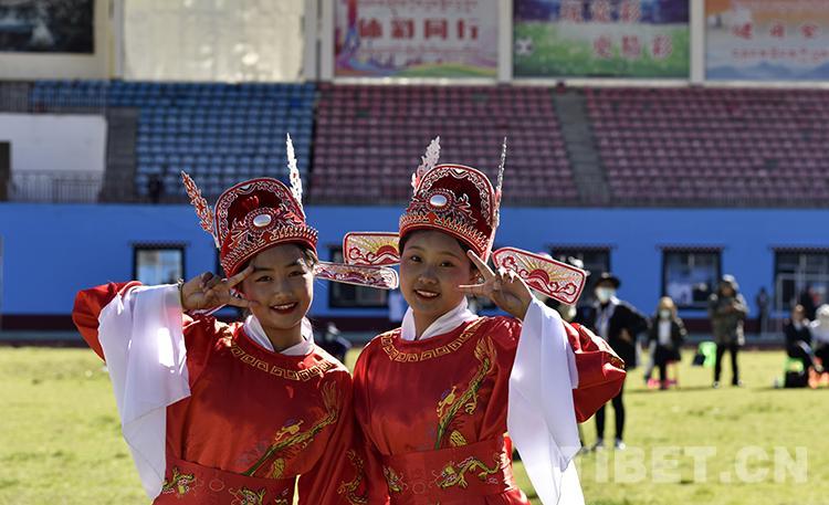 圖為2021雅礱文化旅游節(jié)開幕式文藝演出中,山南市第二高級(jí)中學(xué)生們?cè)诤驁?chǎng) 攝影:王媛媛