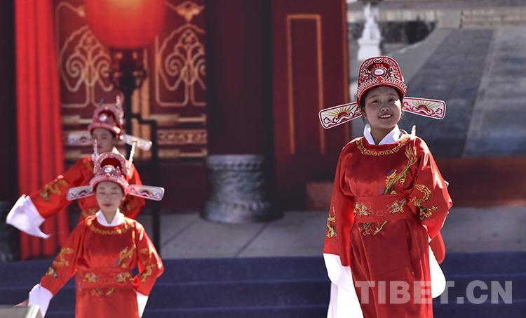 圖為2021雅礱文化旅游節(jié)開幕式文藝演出中,山南市第二高級(jí)中學(xué)生們表演黃梅戲《女駙馬》選段 攝影:王媛媛