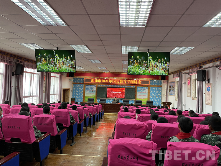 當日下午,邀請那曲軍分區(qū)干部走進校園為那曲市二中學生開展一次國防教育專題講座。專題講座開始前,首先由七年級格桑次仁和巴桑旺姆同學為大家深情朗誦《請黨放心 強軍有我》,一首詩詞朗誦把大家緩緩帶入課堂。由那曲軍分區(qū)唐鵬同志運用豐富的知識和大量史實,圍繞國防教育的重要意義等內容為大家作了一場精彩的講座,利用媒體視頻、圖片資料給師生們講解了我國國防現狀、國防建設的重要作用,讓學生掌握基本軍事知識技能,加深對軍隊的認識和理解,整個講座旁征博引,數據翔實,觀點敏銳,既有清晰的歷史脈絡,又有具體事件的介紹,在同學中引起了強烈共鳴。