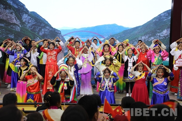 活動(dòng)中,同學(xué)們用藏漢雙語(yǔ)傾情朗誦《石榴籽心連心,民族團(tuán)結(jié)一家親》,深情表達(dá)了對(duì)偉大祖國(guó)深沉熱烈的愛(ài)、對(duì)維護(hù)民族團(tuán)結(jié)堅(jiān)定的信心和決心。山南邊境管理支隊(duì)浪卡子邊境管理大隊(duì)教導(dǎo)員索朗達(dá)杰同志通過(guò)講述邊防部隊(duì)愛(ài)邊守邊、加強(qiáng)民族團(tuán)結(jié)的故事,將無(wú)數(shù)邊防戰(zhàn)士守衛(wèi)國(guó)境線、捍衛(wèi)國(guó)家領(lǐng)土、維護(hù)民族團(tuán)結(jié)的時(shí)代縮影呈現(xiàn)給大家;舞蹈《洗衣歌》生動(dòng)反映了軍民魚水深情;原雙湖縣中心小學(xué)教師、西藏自治區(qū)民族團(tuán)結(jié)先進(jìn)代表曹小花老師分享了自己在那曲雙湖縣堅(jiān)守12年基礎(chǔ)教育,踐行民族團(tuán)結(jié)的感人經(jīng)歷,在坐的師生深受感動(dòng);索朗頓珠同志講述了卓嘎、央宗姐妹作為“神圣國(guó)土的守護(hù)者”堅(jiān)守玉麥三人鄉(xiāng),踐行“國(guó)是中國(guó) 家是玉麥”的感人故事!在活動(dòng)中,56名同學(xué)身著各民族服裝伴著手語(yǔ)飽含深情地演繹了《國(guó)家》,用指尖唱出對(duì)家的依賴、國(guó)的熱愛(ài);朗誦《請(qǐng)黨放心,強(qiáng)國(guó)有我》鏗鏘有力的展現(xiàn)了新一代西藏團(tuán)員青年在黨的領(lǐng)導(dǎo)下,加強(qiáng)民族團(tuán)結(jié)、建設(shè)美麗西藏的青春誓言!最后,活動(dòng)在全體團(tuán)員青年重溫入團(tuán)誓詞中結(jié)束。