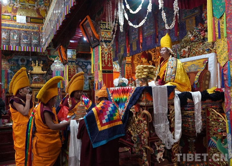 格培林寺,始建于公元1738年,屬藏傳佛教格魯派。寺管會(huì)主任桑母曲珍激動(dòng)地說(shuō):“我曾經(jīng)在扎寺有緣拜見(jiàn)班禪大師,大師是一位知識(shí)淵博,佛教造詣深厚,各方面都值得敬仰和崇拜的高僧。今年一聽(tīng)到大師要到我們寺院,僧尼們都非常激動(dòng),早早地開(kāi)始準(zhǔn)備迎接。今天大師終于蒞臨我們寺院,為我們講經(jīng)傳法、賜福摸頂、發(fā)放布施、給予教誨與勉勵(lì),我們收獲很大,一定會(huì)更加努力精進(jìn)學(xué)習(xí),提高宗教造詣和自身素質(zhì)。”