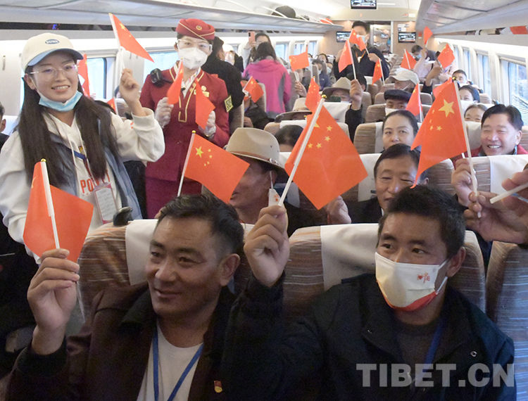 這是森布日那曲極高海拔生態(tài)搬遷安置點(diǎn)的赴京基層干部乘坐京張高鐵列車,感受祖國(guó)的偉大變化(唐召明2021年10月20日攝)
