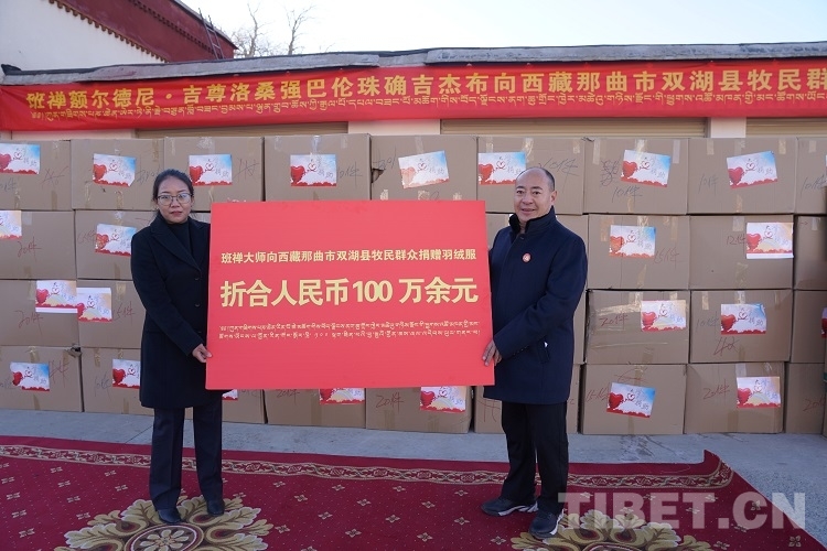 “雙湖縣海拔極高,冬天異常寒冷,有了班禪捐贈(zèng)的這批暖心防寒衣,必將溫暖著基層牧民群眾的身,更溫暖著基層牧民群眾的心,使這個(gè)冬天不再冷。”雙湖縣副縣長普珍說,“班禪始終秉持‘慈悲濟(jì)世、利益眾生’‘篤行仁愛、踐行信仰’的宗教慈愛和諧理念,充分發(fā)揚(yáng)愛國愛教、樂善好施、服務(wù)社會(huì)的優(yōu)良傳統(tǒng),關(guān)心和愛護(hù)廣大高寒地區(qū)基層農(nóng)牧民群眾。此次愛心捐贈(zèng)更是充分表明了班禪記掛農(nóng)牧民冷暖,關(guān)心愛護(hù)基層群眾的高尚品質(zhì)。”