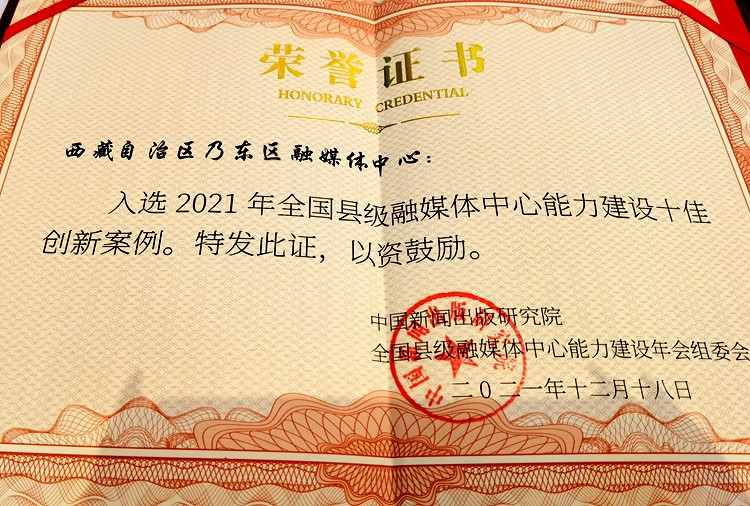 中國西藏網(wǎng)訊 12月18日,第二屆全國縣級融媒體中心能力建設年會在成都市雙流區(qū)舉行。西藏自治區(qū)山南市乃東區(qū)融媒體中心入選“2021年全國縣級融媒體中心能力建設十佳創(chuàng)新案例”。這是西藏自治區(qū)唯一獲得此獎的縣(區(qū))級融媒體中心。