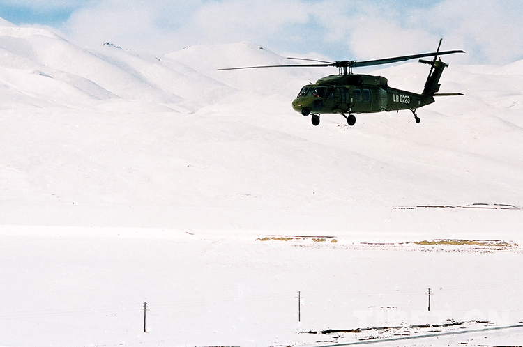 旋即,首都北京來電,中央派運輸機(jī)空投物資。1990年3月23日,銀燕展翅藏北,身為新華社西藏分社攝影記者的我,登上空投救援的大飛機(jī)跟隨采訪。不幾日,中央又電令兩架“黑鷹”直升飛機(jī)投入到緊張的抗災(zāi)救災(zāi)工作中。