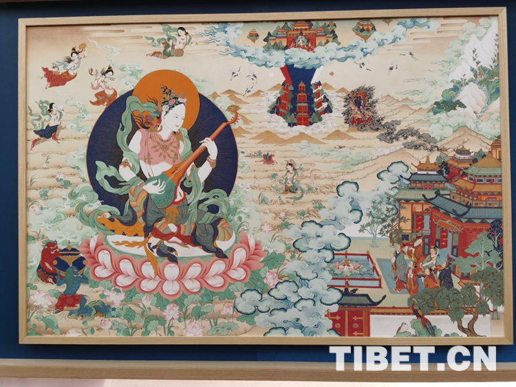 唐卡作為藏民族文化中一種獨(dú)具特色的繪畫藝術(shù)形式,題材內(nèi)容涉及諸多領(lǐng)域的藏族“百科全書(shū)”,是中華民族民間藝術(shù)中彌足珍貴的非物質(zhì)文化遺產(chǎn)。此次展出的新唐卡,以輕靈的姿態(tài)融入社會(huì)、融入市民生活,把內(nèi)在和善吉祥之美奉獻(xiàn)給觀眾,這種新表達(dá),讓人耳目一新。