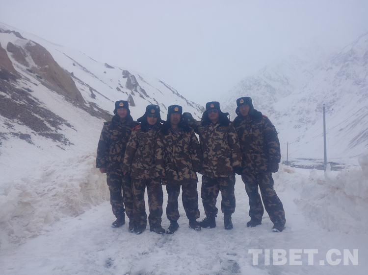 圖為尼瑪國(guó)杰(右一)與執(zhí)勤點(diǎn)駐點(diǎn)戰(zhàn)友合影
