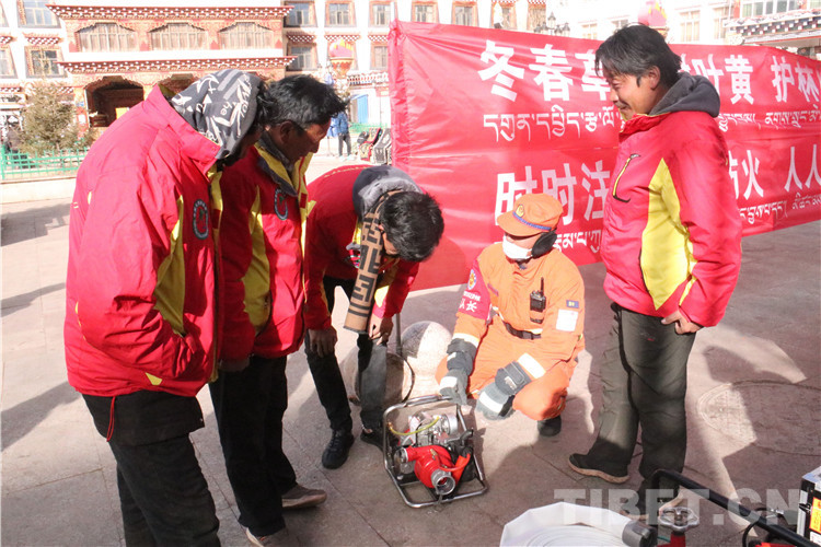 圖為昌都市貢覺縣,消防隊(duì)員向群眾宣傳消防知識