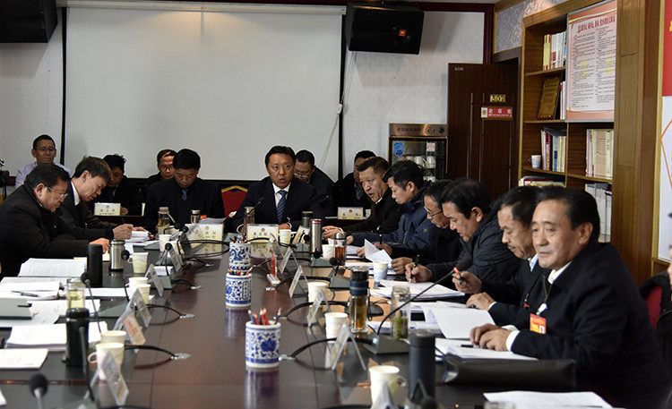 圖為西藏自治區(qū)政協(xié)十一屆五次會(huì)議小組討論現(xiàn)場(chǎng) 攝影:王媛媛