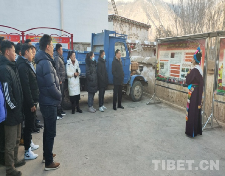 圖為觀摩團在聽取芒康縣相關(guān)工作人員介紹