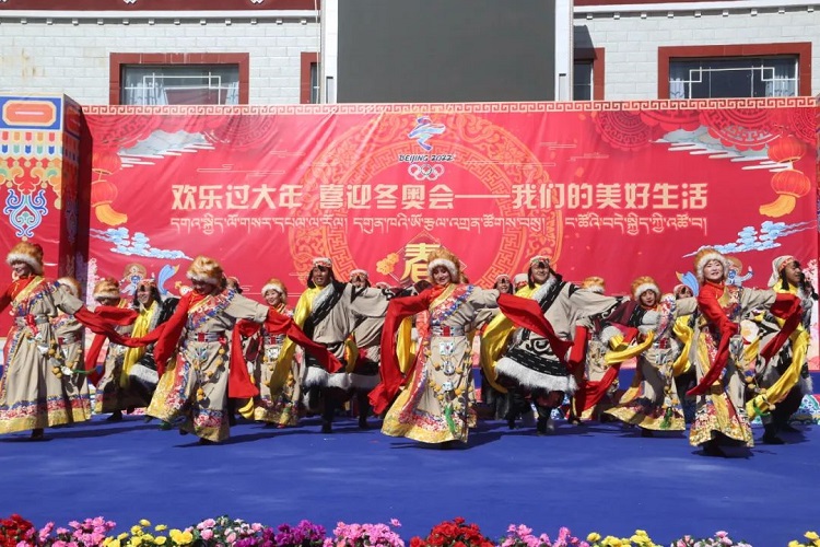 中國西藏網訊 日前,西藏自治區(qū)山南市乃東區(qū)扎西曲登社區(qū)舉行以“歡樂過大年 喜迎冬奧會 我們的美好生活”為主題的“村晚”活動。