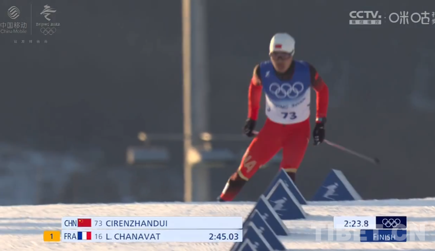 男子個(gè)人短距離(自由技術(shù))資格賽共有90位運(yùn)動(dòng)員參加,前30名晉級(jí)1/4決賽。首次參加冬奧會(huì)的次仁占堆出發(fā)技術(shù)不錯(cuò),他在前0.6公里計(jì)時(shí)點(diǎn)滑出了1分23秒2的成績,接下來,次仁占堆控制住節(jié)奏,獲得第60名。