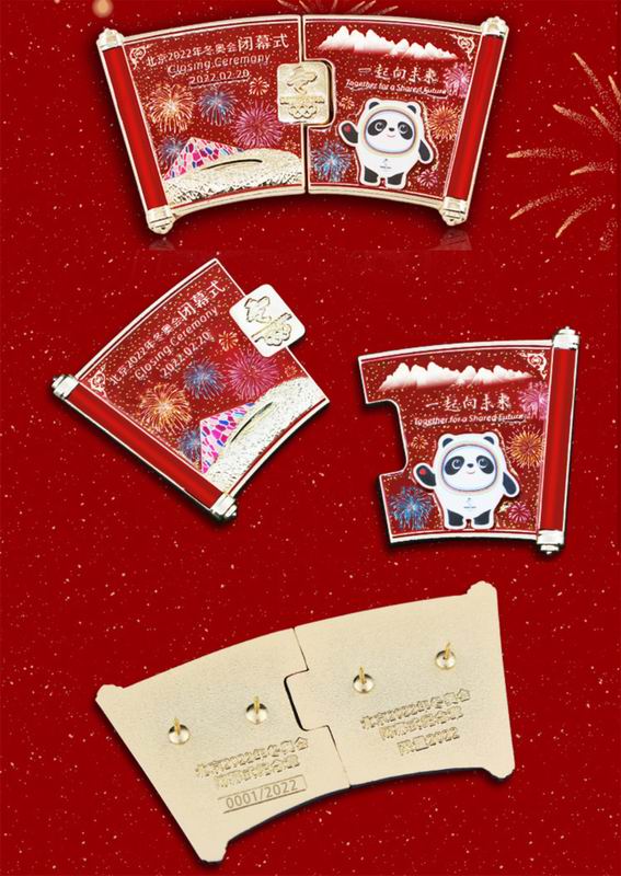 “來日方長(zhǎng)” 北京2022年冬奧會(huì)閉幕式紀(jì)念徽章一套兩枚,拼合在一起就形成了一個(gè)漂亮的卷軸,寓意雖然北京冬奧會(huì)圓滿閉幕,但奧運(yùn)精神薪火相傳,來日方長(zhǎng)?;照虏馁|(zhì)為鋅合金,采用釉面彩繪、立體浮雕、立體分層等工藝,每個(gè)產(chǎn)品均雕刻獨(dú)立序列號(hào),高5cm、寬9.3cm、厚3mm,紙盒包裝,限量2022套。
