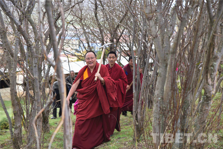 圖為達(dá)扎委員帶領(lǐng)達(dá)扎寺僧人和當(dāng)?shù)厝罕娭矘湓炝?/p>