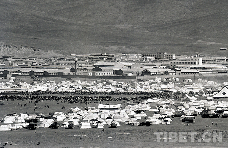 這是在藏北首府那曲鎮(zhèn)賽馬會(huì)上,臨時(shí)搭建起的各式帳篷(唐召明1987年攝)