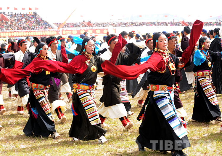 西藏民間歌舞五光十色,風(fēng)格迥異,種類(lèi)繁多。農(nóng)牧民群眾自豪地說(shuō),“天上有多少星星,我們就有多少調(diào)。我們做什么事,就有什么事的歌,什么事的舞。”