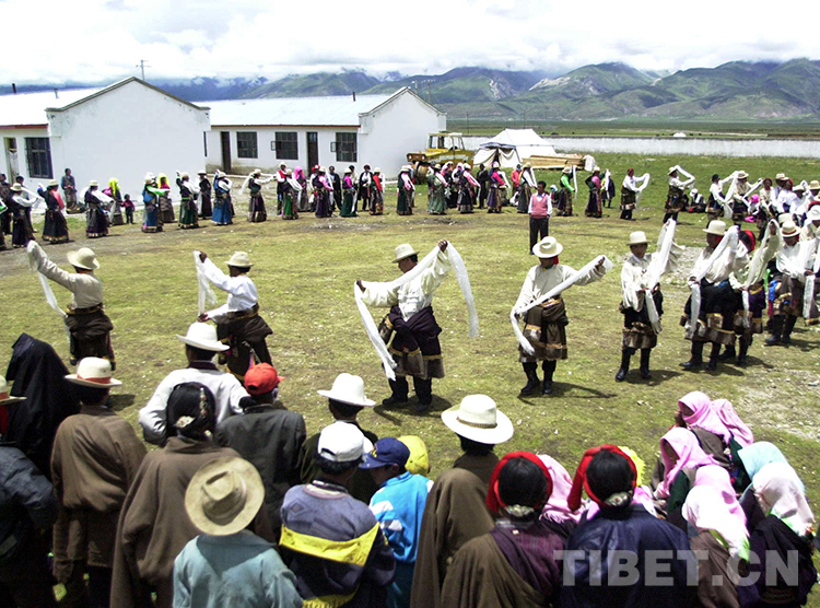 藏北牧民群眾與西藏其他地區(qū)群眾一樣,激越的民歌與優(yōu)美的舞蹈表現(xiàn)出他們豪放的性格和對(duì)生活的熱愛(ài)。