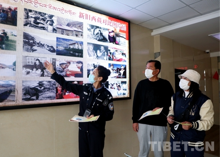 圖為辦證室民警講解西藏百萬農(nóng)奴翻身得解放的歷史 攝影:仁青旺堆