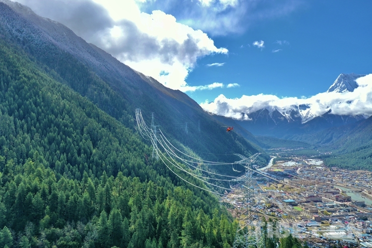 圖為國網(wǎng)通航公司SG1151直升機(jī)機(jī)組正在對(duì)波林線進(jìn)行巡視檢查 攝影:閆昱翰