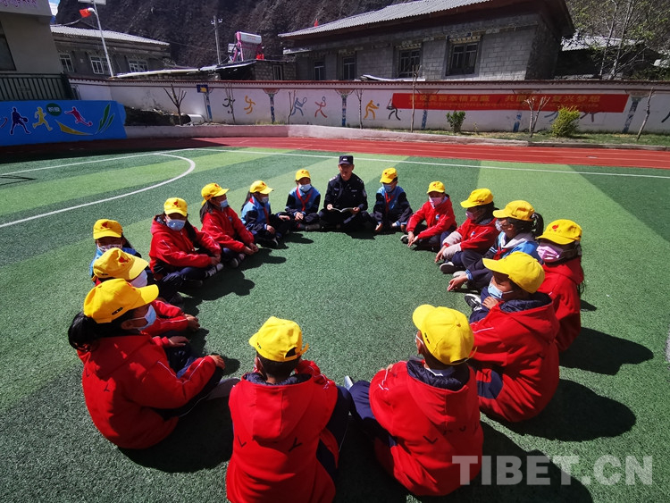 圖為林芝金東邊境派出所民警深入駐地小學與學生共同學習《國家安全法》知識 攝影:徐華升