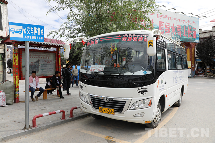 圖為西藏自治區(qū)山南市群眾搭乘農(nóng)村客運(yùn)班車(chē)出行