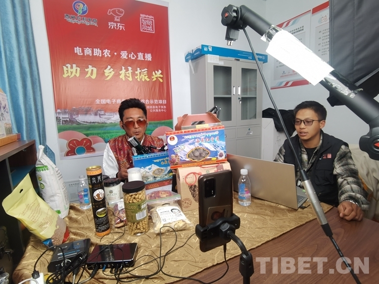 圖為主播在瓊結縣農(nóng)村快遞分撥配送中心工作室內(nèi)為當?shù)靥禺a(chǎn)“代貨” 西藏自治區(qū)交通運輸廳供圖