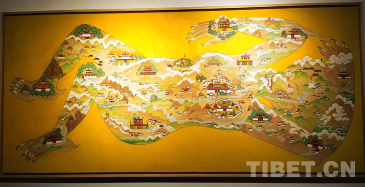 圖為鎮(zhèn)魔圖。作品以西藏“鎮(zhèn)魔圖”傳說為繪畫基礎(chǔ)進(jìn)行了探索性創(chuàng)作,色彩厚重絢麗 攝影:王淑