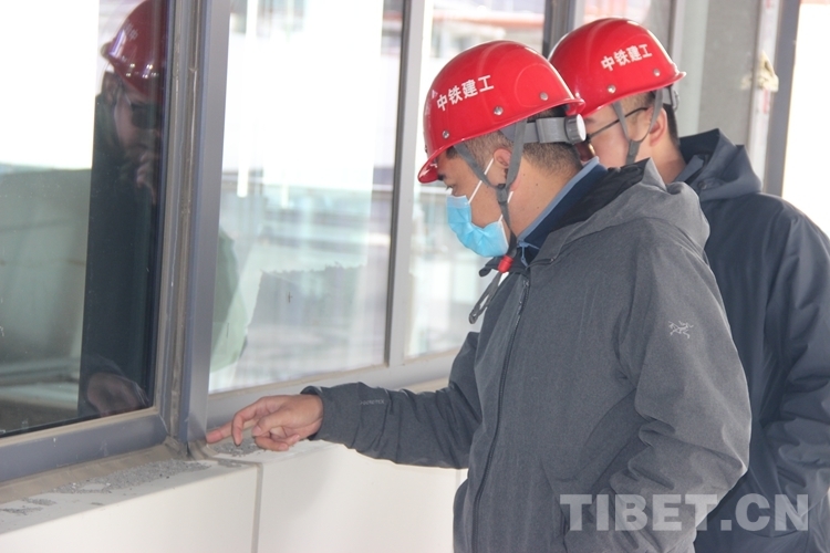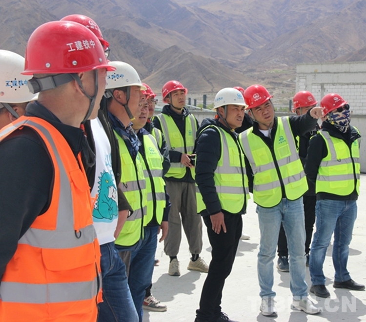 圖為張磊(右二)帶領(lǐng)施工人員在西藏自治區(qū)醫(yī)院項(xiàng)目施工開展現(xiàn)場(chǎng)檢查
