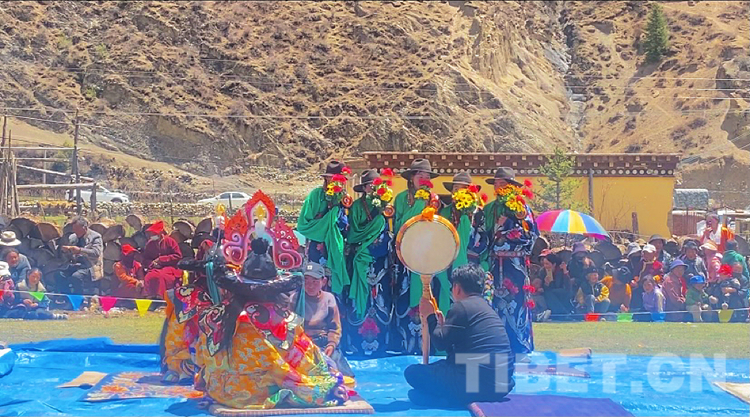 中國西藏網(wǎng)訊 近日,西藏自治區(qū)昌都市卡若區(qū)妥壩鄉(xiāng)康巴村文藝隊表演了西藏傳統(tǒng)八大藏戲之一的《諾桑王子》,為當(dāng)?shù)厝罕姭I上了一份豐盛的文化大餐。
