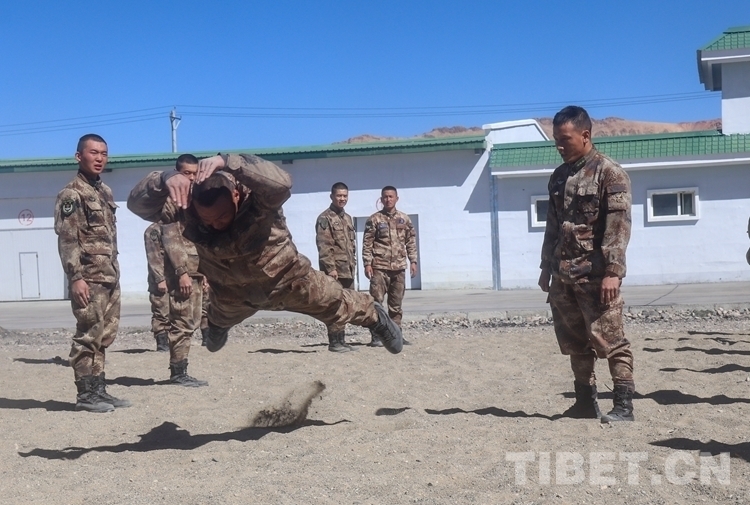 圖為阿里軍分區(qū)某部官兵進(jìn)行倒功訓(xùn)練