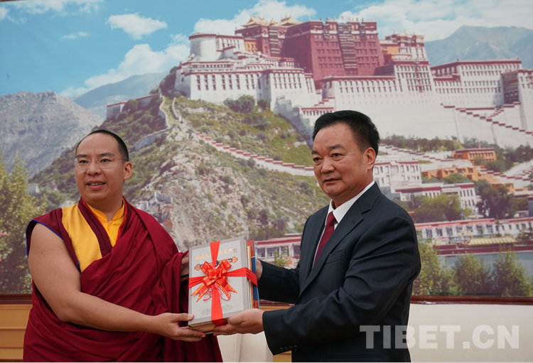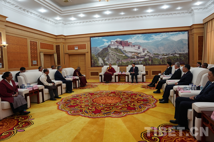 西藏自治區(qū)領導洛桑江村、莊嚴、陳永奇、嘎瑪澤登、達娃次仁、甲熱·洛桑丹增、珠康·土登克珠、薩龍·平拉、索朗仁增陪同會見。(中國西藏網(wǎng) 記者/王淑 拉姆)