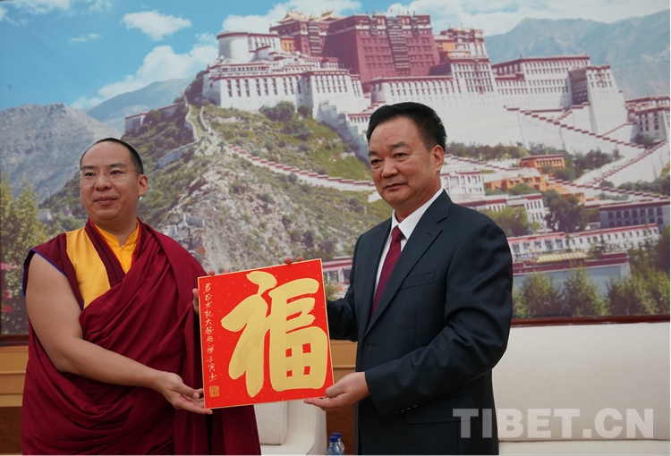王君正說,班禪帶領中國佛教協(xié)會西藏分會,教育引導全區(qū)藏傳佛教界人士堅持藏傳佛教中國化方向,積極推進藏傳佛教與社會主義社會相適應,為西藏長治久安和高質量發(fā)展作出了積極貢獻。去年考取了扎什倫布寺佛學顯宗最高學位“嘎欽”學位,在宗教修為上取得重要成果。希望班禪,牢記習近平總書記殷殷囑托,帶頭愛國愛教,繼承和發(fā)揚歷代班禪大師愛國愛教、護國利民的光榮傳統(tǒng),旗幟鮮明反對分裂,堅定堅決維護祖國統(tǒng)一。積極推進藏傳佛教中國化,精進學修、深研經典,加強對社會主義核心價值觀和藏傳佛教教義教規(guī)的闡釋,積極引導藏傳佛教與社會主義社會相適應。尊崇憲法、敬畏法律、嚴守戒律,教育引導僧俗信眾牢固樹立國大于教、國法大于教規(guī)、公民大于教民觀念,以實際行動推進“國家意識、公民意識、法治意識”教育深入開展。認真履職,積極參政議政,為促進西藏長治久安和高質量發(fā)展建言獻策,推動美麗幸福西藏建設。