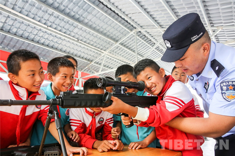 圖為背崩邊境派出所民警在執(zhí)勤點(diǎn)組織警營(yíng)開放日活動(dòng)