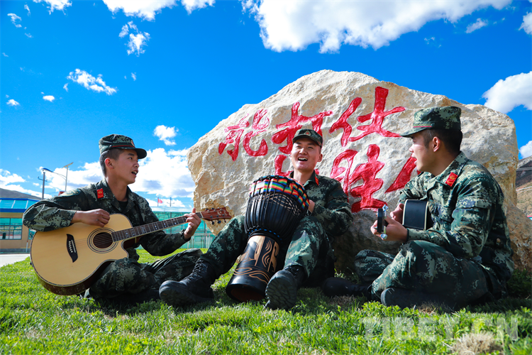 中國(guó)西藏網(wǎng)訊 近日,駐守在平均海拔4300米的西藏自治區(qū)昌都市八宿縣邦達(dá)鎮(zhèn)的武警第二機(jī)動(dòng)總隊(duì)某支隊(duì)官兵,充分發(fā)揮興趣愛好特點(diǎn),開展了樂隊(duì)演奏、書香軍營(yíng)、讀書分享會(huì)等特色軍營(yíng)文化活動(dòng),豐富了高原軍營(yíng)文化生活,進(jìn)一步鑄牢了青年官兵扎根高原、建設(shè)邊疆的堅(jiān)定理想信念。圖為該支隊(duì)官兵正在彈奏自編歌曲《青春高原》 攝影:陸文凱(中國(guó)西藏網(wǎng) 通訊員/陸文凱)