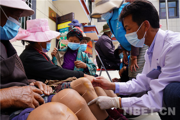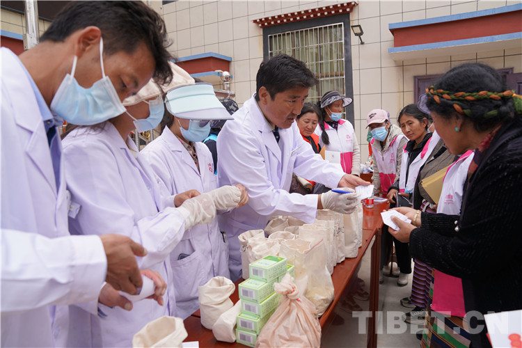 義診中,瓊結(jié)縣衛(wèi)健委(藏醫(yī)醫(yī)院)醫(yī)療健康志愿隊(duì)耐心接待每位前來(lái)咨詢(xún)的農(nóng)牧民群眾,悉心為農(nóng)牧民群眾診斷病情。