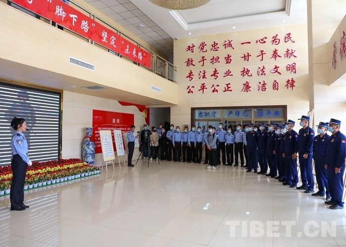 中國(guó)西藏網(wǎng)訊 夏日的西藏日喀則邊境管理支隊(duì)營(yíng)區(qū)熱鬧非凡,日喀則海關(guān)、日喀則團(tuán)市委、日喀則市退役軍人事務(wù)局、日喀則市教育局、日喀則市消防救援支隊(duì)、日喀則市反恐特偵支隊(duì)等友鄰單位干部代表與支隊(duì)民警齊聚在支隊(duì)機(jī)關(guān)觀展覽、品佳作、參觀警史館,喜迎二十大。