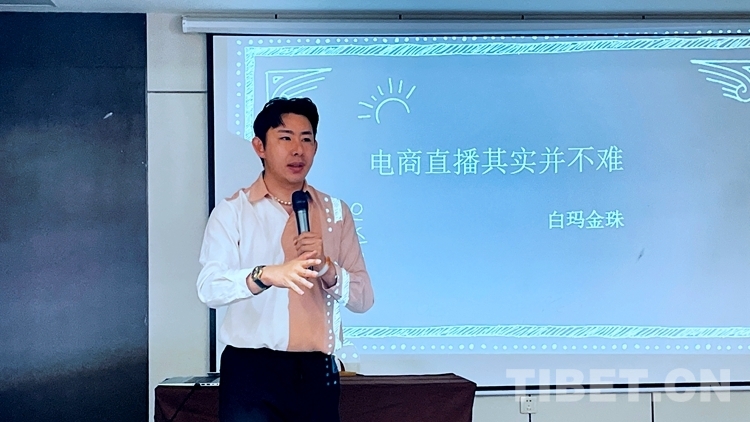 圖為西藏自治區(qū)青聯(lián)委員、拉薩市政協(xié)委員、創(chuàng)業(yè)青年網(wǎng)紅白瑪金珠講解電商直播知識(shí)和經(jīng)驗(yàn) 攝影:拉姆