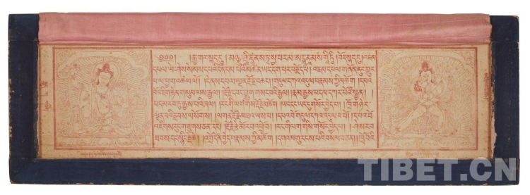 推崇藏傳佛教是清政府治理蒙藏地區(qū)的政治需要,同時(shí)也促進(jìn)了各民族文化的交流與交融?!洞蟛亟?jīng)?甘珠爾》該版藏經(jīng)系清王室官刻本,纂輯、刻印都是由官方主持。刻造、裝幀頗為精良,版型較一般藏文經(jīng)大,每夾扉畫均為手工繪制,筆觸細(xì)膩,設(shè)色鮮麗,大多出自藏族畫家手筆,為佛教文化研究不可缺的資料??滴醯蹫榇擞H撰《御制番藏經(jīng)序》,序文稱,刊印本藏是為“廣崇大藏”。