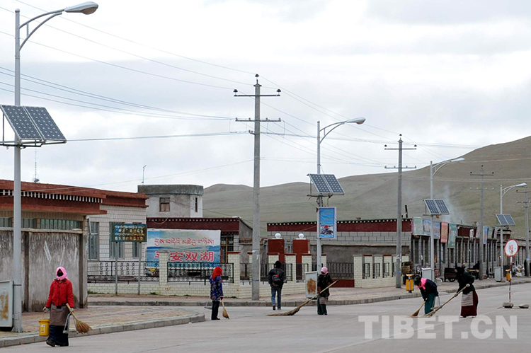 這是雙湖特別區(qū)(現(xiàn)雙湖縣)新建的城鎮(zhèn)街道和太陽能路燈(唐召明2009年攝)
