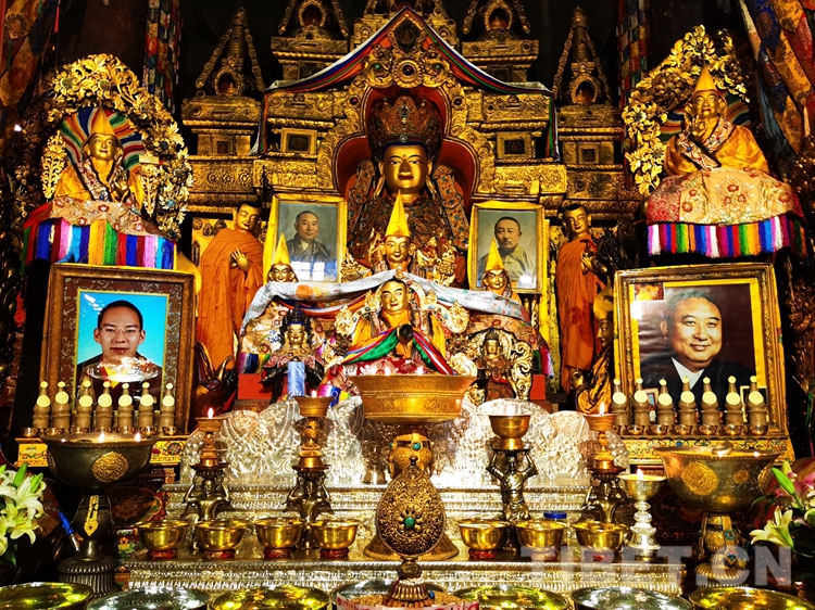 在措欽大殿,班禪虔誠(chéng)叩拜供奉于此的佛祖釋迦牟尼佛像和藏傳佛教格魯派始祖宗喀巴塑像,與眾僧共同念誦經(jīng)文后,回到寢宮拉讓殿。下午,班禪登上拉讓日光殿寶座,接受扎什倫布寺管委會(huì)僧人成員、高僧朝拜,并為他們摸頂賜福,帶領(lǐng)高僧誦經(jīng)祈福。