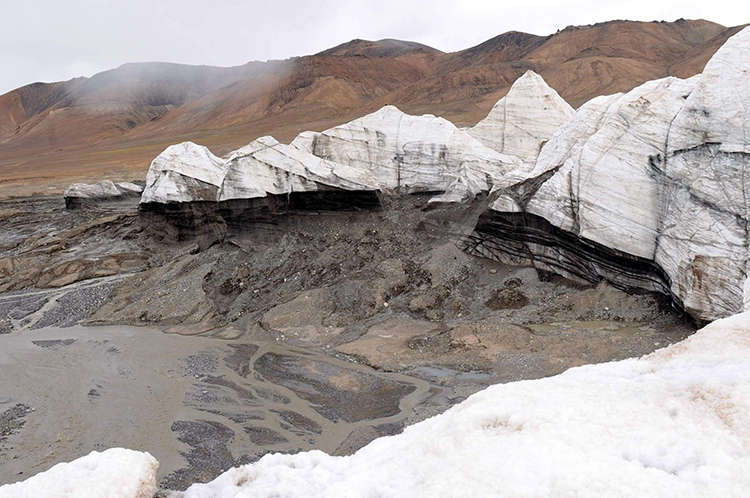 過河后我們停車,徒步在向?qū)У膸ьI(lǐng)下走向冰川。這就是被確認為除南極、北極以外的世界第三大冰川啊!